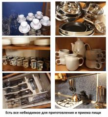 Есть также всякая необходимая домашняя утварь, включая инвентарь для уборки, для глажки белья, всевозможная посуда для приготовления и приема пищи и т.д.