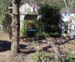 До пляжа Ладоги 2 км по лесной дороге, на машине 5 минут, пешком 20 минут. Сосновый боровой лес через один участок, 40-50 метров, на участке тоже сосны. Все фото леса и пляжа реальные.