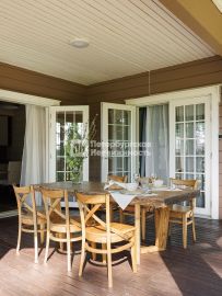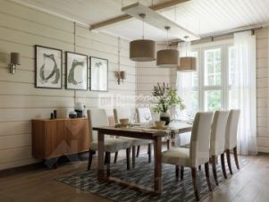 Дом полностью меблирован и укомплектован всей необходимой бытовой техникой, постельными и иными принадлежностями, оборудован камином, сауной. Позволяет разместить большое количество гостей.