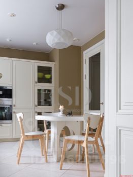 В отделке использованы только лучшие премиальные импортные материалы. Мягкая мебель из натуральной кожи немецкой фирмы BRUHL, немецкая кухня с нано-стеклом (фартук) с встроенной бытовой техникой MIELE. Во всех санузлах мраморные столешницы на тумбах из дерева ценных пород для раковин. Вся сантехника фирмы JACOB DELAFONE. Акустическая система DYNAUDIO в потолке и стенах гостиной. Полы брашированный дуб на первом этаже и итальянская каменная плитка, на втором этаже натуральный дубовый паркет во всех комнатах. На стенах высоко премиальная английская краска, в кабинете и спальне на втором этаже английские обои. Двери нестандартные, созданы по эскизам мастерами реставрационной мастерской, восстанавливающих интерьеры исторических дворцов и особняков Петербурга. Все окна - энергосберегающий металлопластик, выкрашены специальной краской и патинированы.