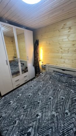 на первом этаже спальня - двуспальная кровать, в зале диван, на втором этаже большой диван.