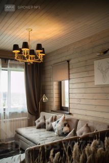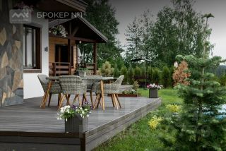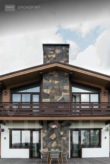 Коттедж общей площадью 130 квадратных метров расположился на самом высоком участке площадью 10 соток в коттеджном поселке Горная деревня.