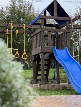 * Идеально для Семьи: Дом без лестниц, с детским уголком, кроваткой/стульчиком и большой уличной площадкой с батутом.