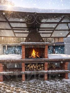 На участке: уличная веранда, зона гриля и копчения. Мангал/решётка/шампуры — бесплатно, коптильня — 500 ₽/день. Территория и парковка ограждены, есть вечернее освещение.