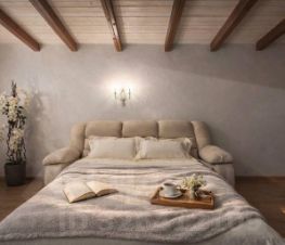 В доме — тёплые полы, большая кухня-столовая ~25 м², спальня на 2 этаже (двуспальная кровать) и спальня-гостиная на 1 этаже (диван двуспальная кровать), санузел с душевой.