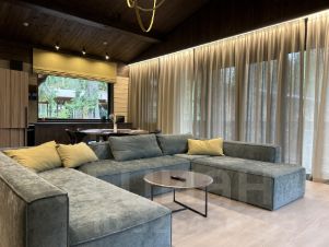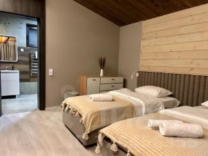 Продумали каждую деталь, оборудовали техникой (телевизор, кофемашина, холодильник, плита, духовка, чайник, вытяжка, отдельное помещения для стирки и глажки белья с утюгом и стиральной машиной, кондиционеры, теплый пол).