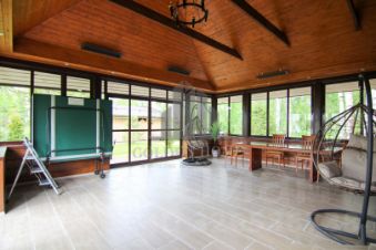 По планировке : на первом этаже располагается большая закрытая терраса, просторная кухня-гостиная, душевая и сауна, на втором этаже спальня с собственным санузлом и гардеробной. На участке : высажен газон, детская площадка, восхитительная чил-аут зона, , парковочная площадка . Можно с животными.