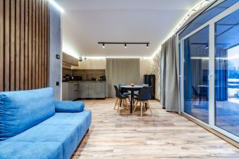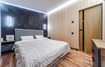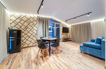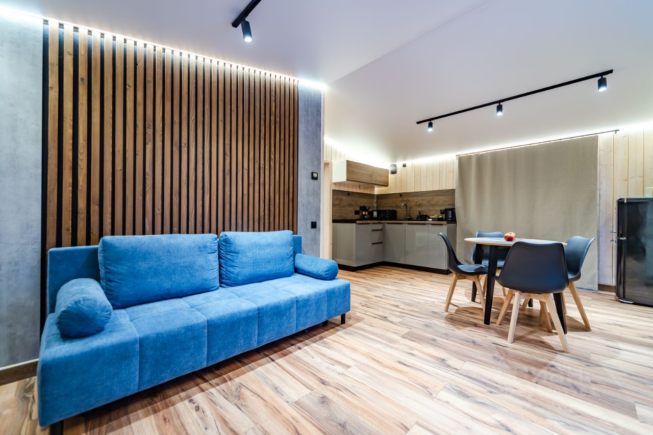 — вместимость: до 4 человек (двуспальная кровать + раскладной диван в кухнегостиной);