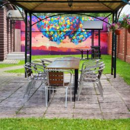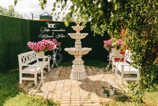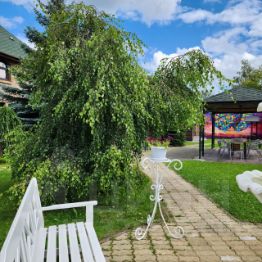 - На облагороженной красивой территории коттеджа есть две расположенные рядом уличные беседки на 8 и 10 человек.