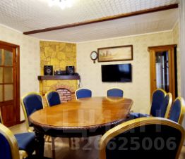 - Гостиная со столом, стульями, креслом, большим диваном, ТВ и музыкальным центром с караоке.