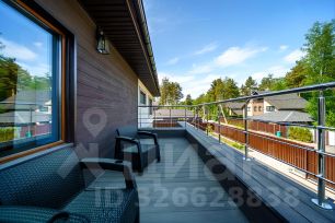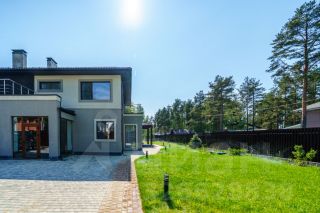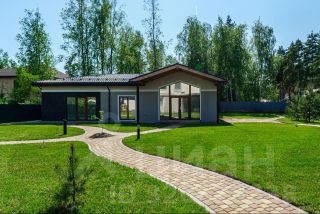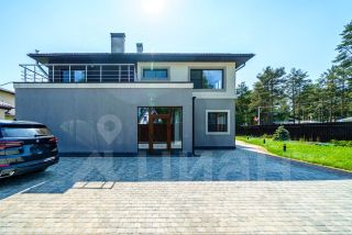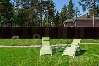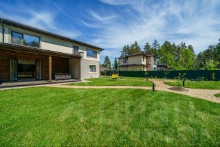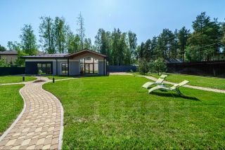 Дом расположен на просторном участке с дорожками и мягким газоном, высажены хвойные деревья и цветущие кустарники, есть гараж на две машины.