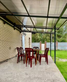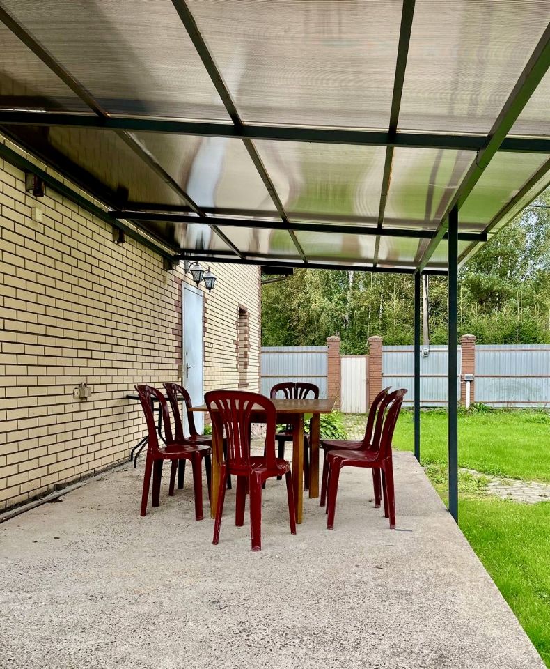 Участок: газон, есть мангал, вся территория огорожена высоким забором, также на участке расположены уличные фонари, есть парковка на 2-3 машины.