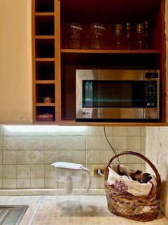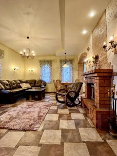 1 этаж: санузел, горячая и холодная вода в доме, кухня-гостиная, 1 комната, есть вся необходимая техника и посуда, стол, стулья, камин, телевизор, диван.