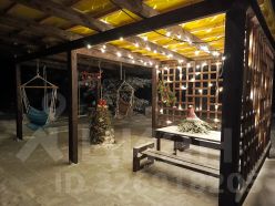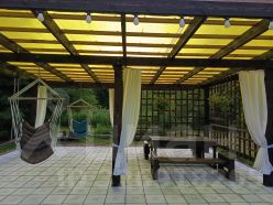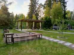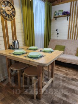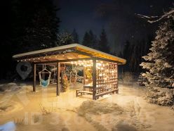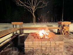 Домик находится на участке общей площадью 20 соток, где также располагается дом собственника. Есть место для парковки автомобиля. В гостевой зоне расположен мангал, качели, очаг, стол, скамейки.