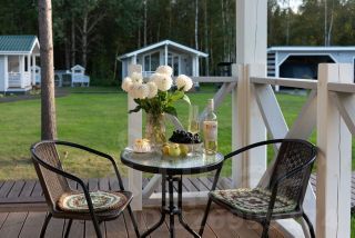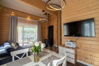 Скандинавский Дом (6сп. Мест) с 2мя спальнями, кухней-гостиной с камином, уютной террасой расположен в живописном месте — вплотную к лесу и в паре минут от реки Лава. Прямой выход в Ладожское озеро — 5 мин на лодке. Лодки, удочки, сапы, баня — аренда на месте. Есть спуск на воду для катера.