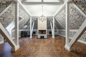 Планировка: Коттедж имеет продуманное распределение пространства на трех этажах. На первом этаже расположены кухня-гостиная, большая гардеробная, кабинет, хозяйская спальня и санузел. Второй этаж включает три спальни и два санузла (включая один хозяйский). На третьем этаже находится мансарда с камином — идеальное место для уединения или встреч с близкими.