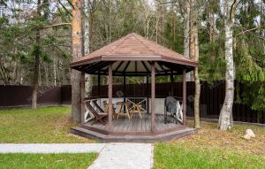 Территория: На участке предусмотрена зона для барбекю, а также уютный гостевой домик с собственным санузлом, кухней и спальней — отличное место для приема друзей или родственников. Для вашего удобства имеется крытая парковка на два автомобиля.