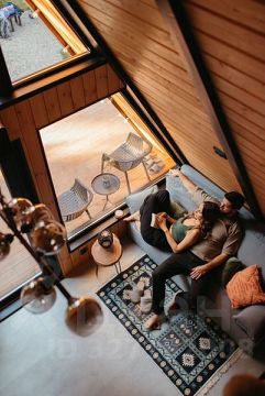 Дом в стиле афрейм 42 кв+ 2 веранды 24 кв, вмещает до 4 гостей.