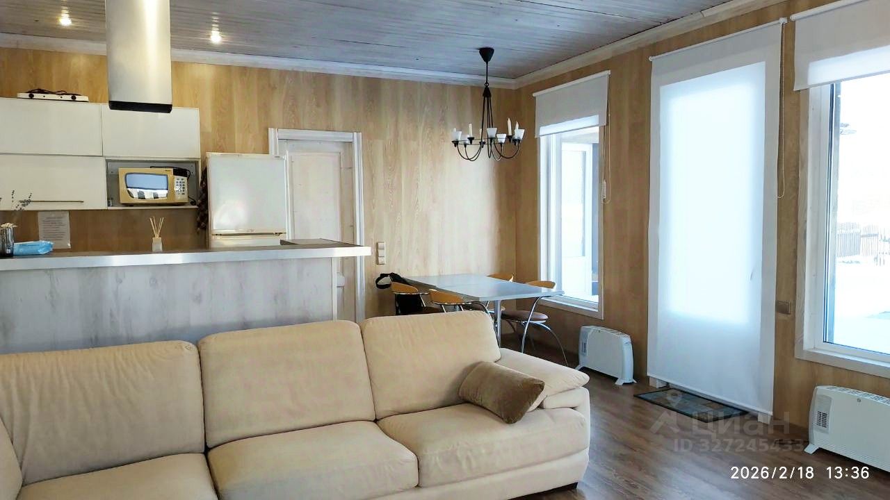 В коттедже: 3 спальни, кухня гостиная, красивый вид, терраса, вся необходимая для проживания бытовая техника и мебель, теплые полы, телевидение "Три колор", интернет. На огороженном участке 10 соток расползается парковка для 1-5 машин и зона для барбекю.