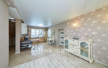 Планировка дома включает в себя два этажа: большую кухню-гостиную, 3 спальни , 2 санузла, читальную зону.