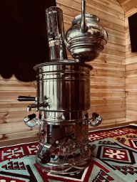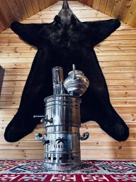 банный комплекс с русской парной на дровах и большой банный чан для парения на свежем воздухе на территории
