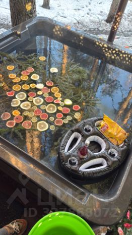 горка для катания на ватрушках и санках возле дома и мини каток на озере.