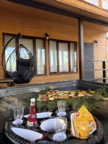 Дополнительно вы можете заказать русскую баню(в бане есть TV,диваны,стол,чайник) с большой террасой и видом на лес и озеро и купель с тёплой водой среди сосен. Хороший вариант для тихого и спокойного отдыха, для семьи и большой компании.