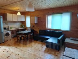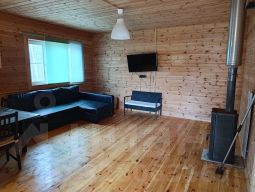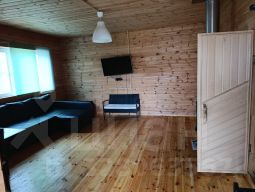 Сдается 1 этажный дом, в доме 1 спальня+гостинная комната и кухня, так же в доме душевая комната. В доме имеется сауна+ душевая комната с туалетом, в доме вода колодцевая. На территории участка имеется спортивная площадка(футбольные ворота+баскетбольное кольцо и спортивный турникет), территория вся ограждена, на территории сад ( красная смородина, черная,смородина, малина, яблони, груши), вся территория засеяна грин травой. Дом баня сдается на длительный срок с мая по октябрь.