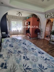 Фундамент ленточный, материал стен - каркас, крыша - ондулин, снаружи обшит сайдингом. В доме 4 комнаты, раздельный санузел. Электричество 15 КВт. Дом отапливается печью и электрическими конвекторами. Канализация - локальная. На участок заведен газ, но к дому не подключен.