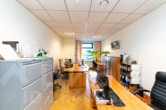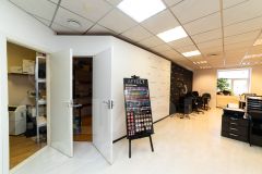 В структуре офисного блока кроме 7 рабочих помещений для сотрудников и склада выделены зоны приемной (рецепшн), отдыха, комната подогрева пищи и приготовления напитков, серверная, гардеробная, подсобные помещения для хранения архивов и хозинвентаря;
