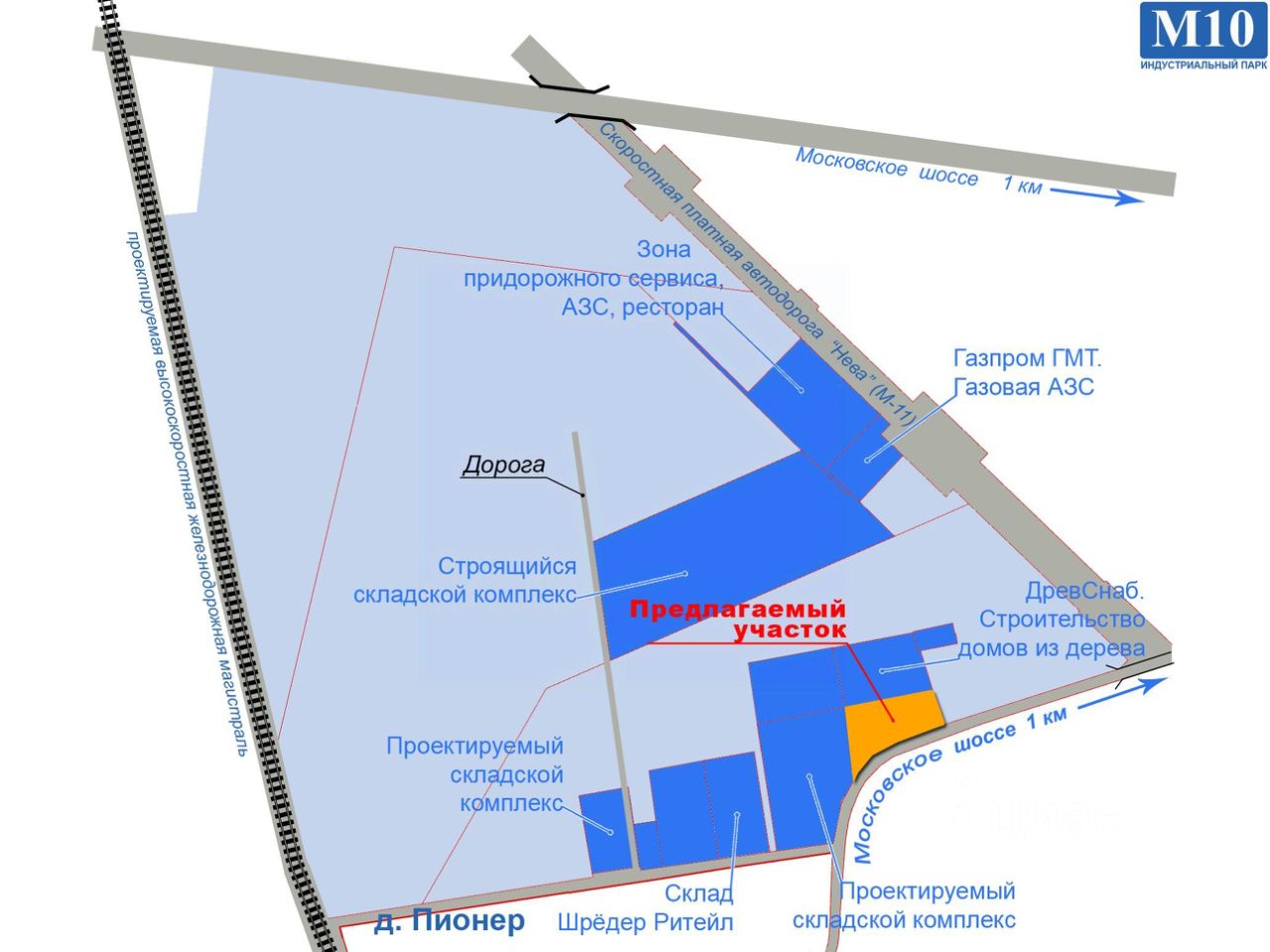 Продажа земельного участка в собственность, расположенного на юге Санкт-Петербурга, на границе Ленинградской области. Индустриальный парк М10 Пионер