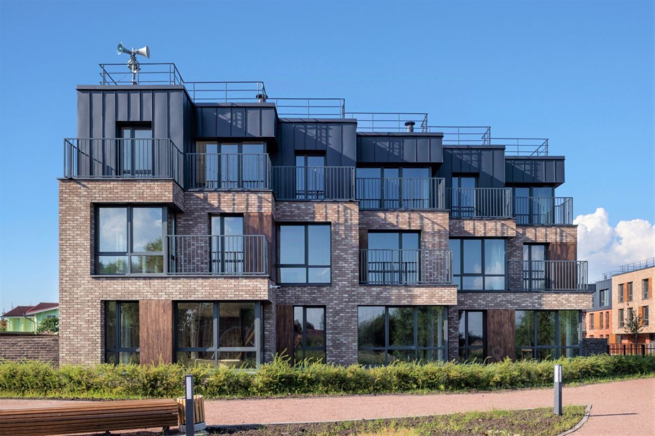 Архитектурный облик комплекса, разработанный знаменитым бюро "Остоженка" заслуживает особого внимания. При отделке фасадов домов применяется долговечный и эффектный кирпич ручной формовки. Все стильные парадные исполнены по авторскому дизайн-проекту с использованием натуральных материалов. Несмотря на малоэтажность, в парадных предусмотрены лифты. Ландшафтный дизайн разделил все пространство комплекса на тихие прогулочные зоны и места для активного отдыха.