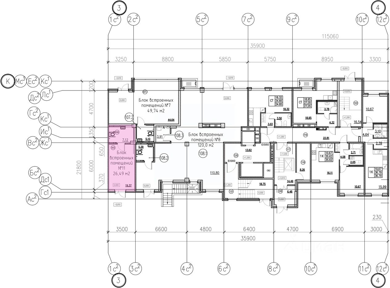 Помещение свободного назначения класса "бизнес" 26.49 м² в ЖК "iD Kudrovo" с выдержанными фасадами и превосходным витражным остеклением и современной инженерией. Каждому коммерческому помещению выделена зона для стилизованной вывески. Каждое помещение оборудовано индивидуальным вентиляционным каналом. Высота потолков 4,5 метра. Выделенная мощность 0,2 КВт на 1 метр квадратный.