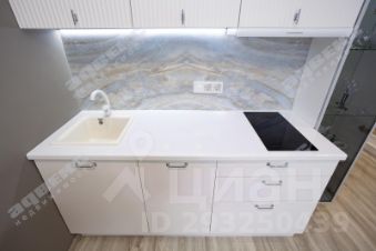 - Уютная кухонная зона оснащена эстетически привлекательным дизайном.