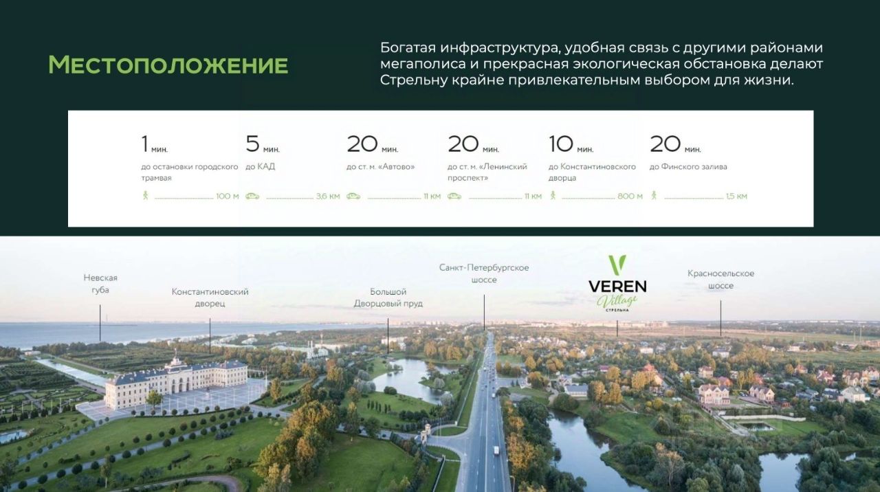 Рядом с комплексом находится Константиновский дворец (всего 500 метров), Санкт-Петербургское шоссе - 200 метров.