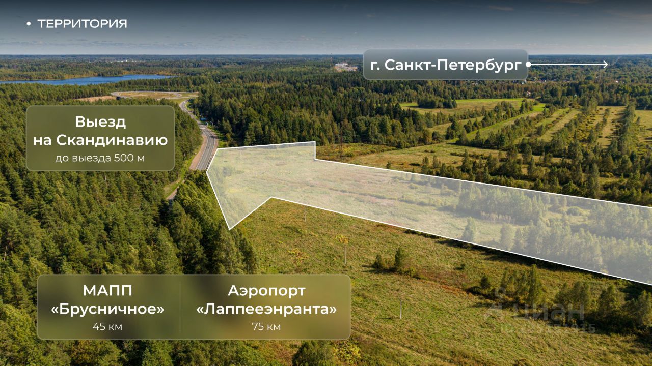 Предлагается земельный участок коммерческого назначения, который идеально подойдет под создание нового гостиничного комплекса, расположенный в 300м от съезда на Выборг с трассы "Скандинавия". Расстояние до Выборга 4км, до Санкт-Петербурга: 90 км до ЗСД, 105км до КАД.