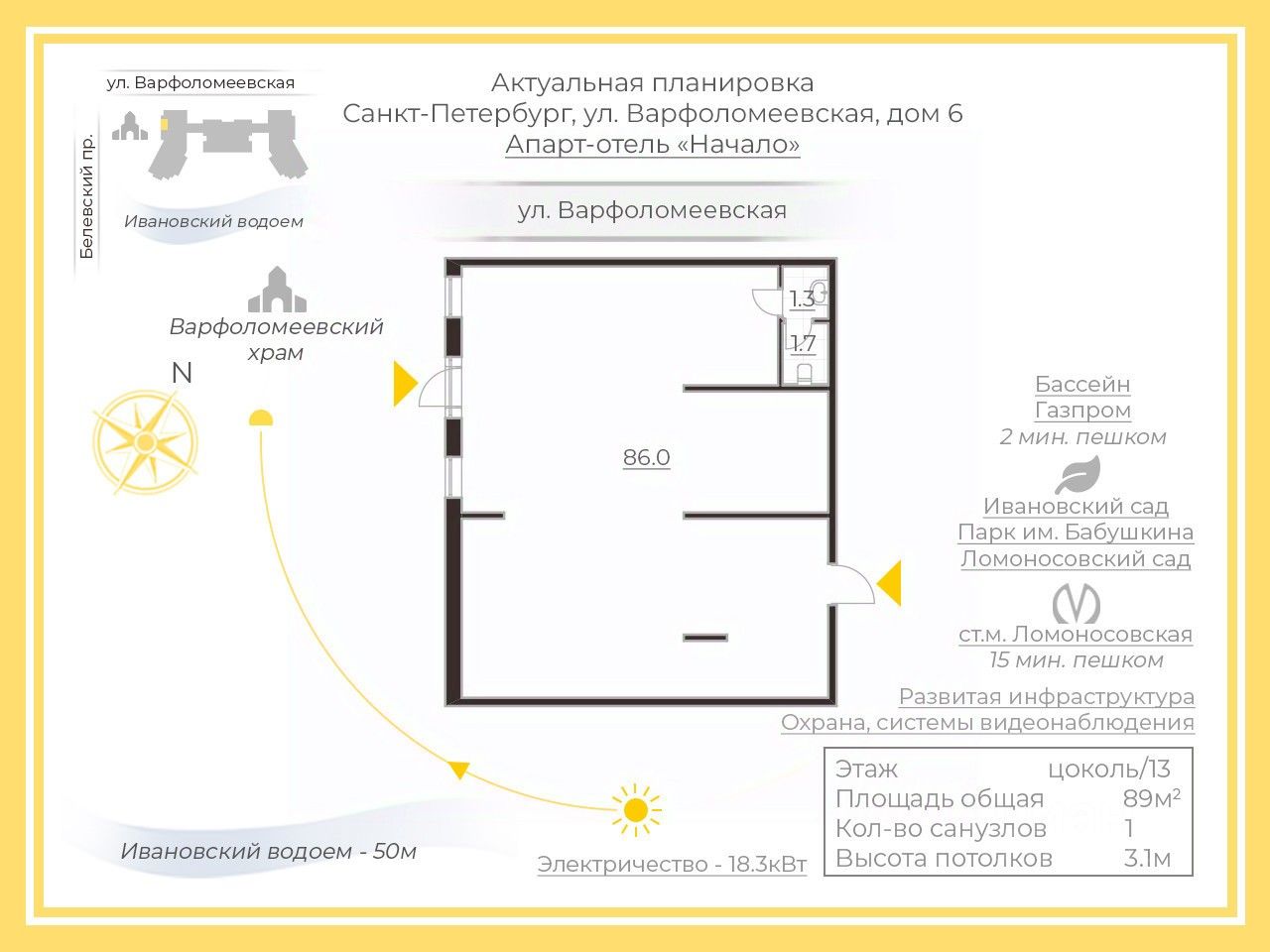 Помещение без отделки, три входа со двора и с лобби дома, общей площадью 89 кв.м. Электричество 18,3кВт.