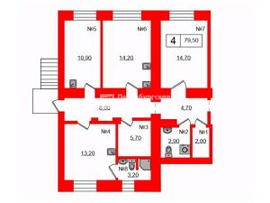 Помещение состоит из 8 комнат и большого коридора: