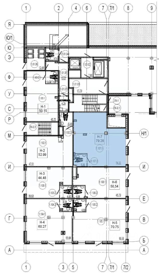 Помещение свободного назначения класса "бизнес" 79.28 м² в ЖК "iD Polytech" с выдержанными фасадами и превосходным витражным остеклением и современной инженерией. Каждому коммерческому помещению выделена зона для стилизованной вывески. Каждое помещение оборудовано индивидуальным вентиляционным каналом. Высота потолков 4,5 метра. Выделенная мощность 0,2 КВт на 1 метр квадратный.