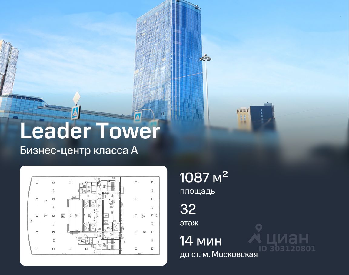 На продажу предлагается панорамный офис площадью 1 087 м² в бизнес-центре Leader Tower (класс А), расположенном в Московском районе Санкт-Петербурга. Помещение занимает 32 этаж из 42, что обеспечивает потрясающие виды на город и ощущение пространства.