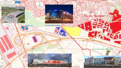 Соседние с Участком земли принадлежат холдингу Адамант , на них расположены торговый комплекс Осиновая Роща с гипермаркетом Prisma и здания Русской стекольной компании ;