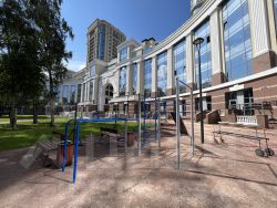 Удачное расположение БЦ на одной из основных транспортной/пешеходной улице нашего Города: близость центра, доступность аэропорта, большое количество зеленых зон отдыха.