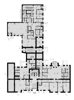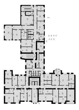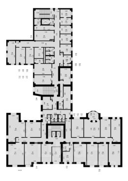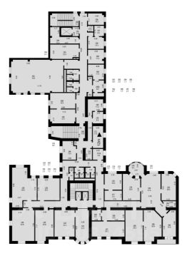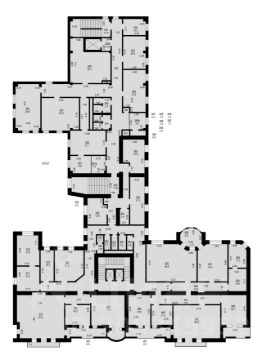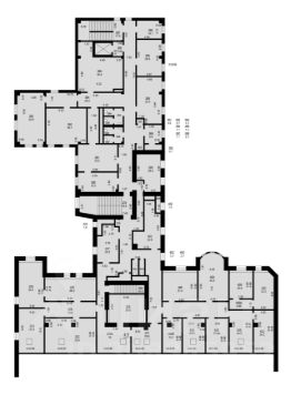 В каждой секции находятся помещения санузлов и помещения хозяйственного назначения.
