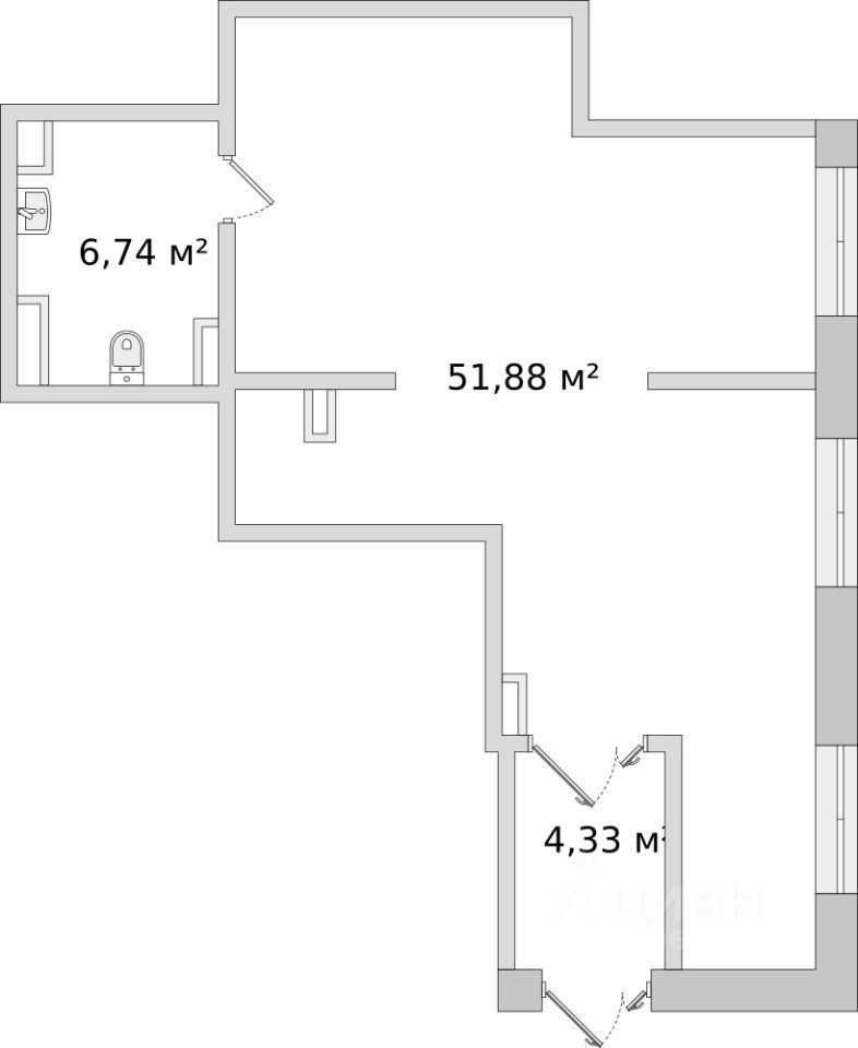 • Общая площадь62,95 м²