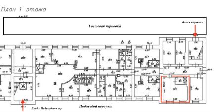 Помещение расположено на первом этаже здания, вход возможен через центральную входную группу с Подъездного переулка или с гостевой парковки, окна на Подъездной переулок.