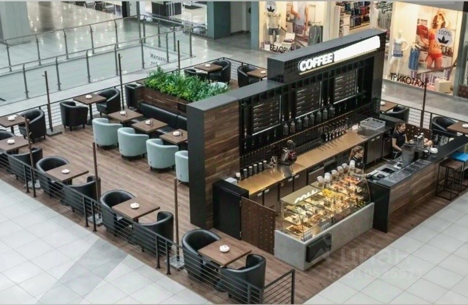 Продается островок-кофейня в крупном торговом центре. На площади более 60 кв м размещается островок с профессиональным оборудованием для приготовления кофе, свежевыжатых соков и мороженого. Островок оборудован в том числе мойкой с подключением горячей и холодной воды от арендатора, что редкость для торговых центров. Так же кофейня размещает столики и диваны на 8 персон. Все оборудование, мебель и товарный остаток передается в собственность.За счет удачной локации и проходимости самого торгового центра обеспечивается постоянный поток клиентов без особых вложений в рекламу. Уютный интерьер и наличие посадочных мест делают кофейню местом притяжения посетителей и сотрудников ТРК. Оборудование и площадь позволяют при желании расширить ассортимент - вафли, десерты и прочее. Персонал из 2 бариста работают посменно и готовы продолжить сотрудничество с новым собственником.Для старта работы есть все необходимое. Работа полностью автоматизирована, заведение успешно себя зарекомендовало себя на данной локации. Никаких дополнительных вложений для продолжения деятельности не требуется. Продавец готов поделиться контактами всех поставщиков продукции и оказать помощь на первоначальном этапе. ID: 181220
