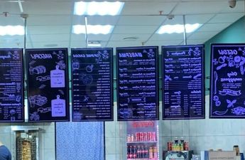 клиентам легко выбрать блюда. Вывеска и витрина освещены подсветкой, что делает
