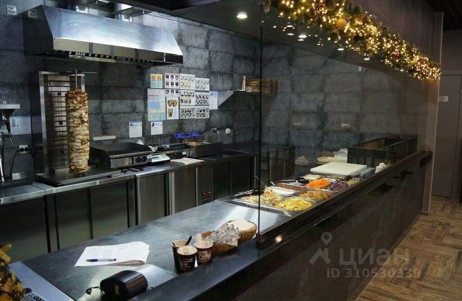 это шаверма, также готовят шашлык, выпечку, продают прохладительные напитки. Средняя выручка 15000-20000 за рабочий день.В стоимость бизнеса входит помещение-павильон, который при