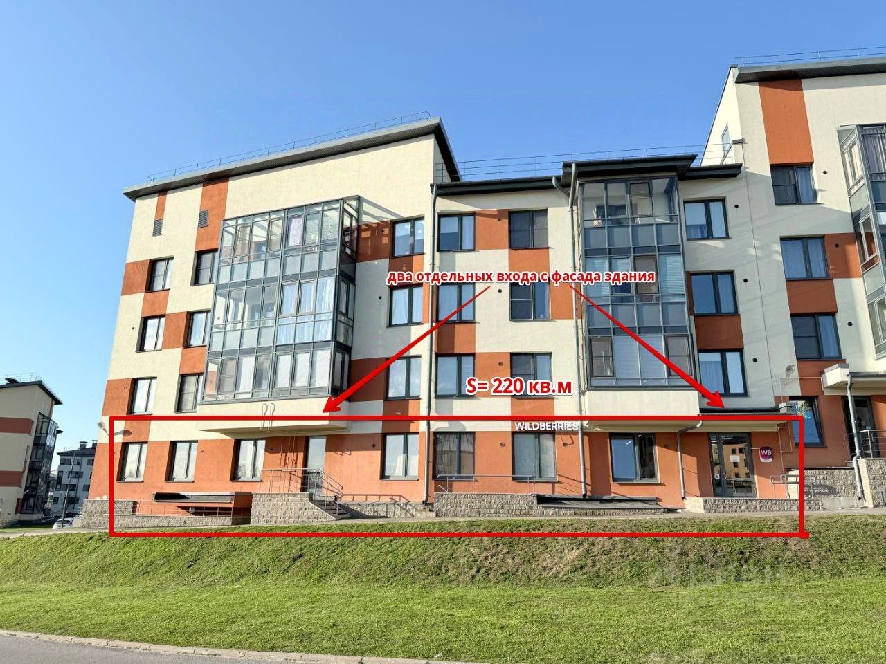 • два отдельных входа с фасада здания;
