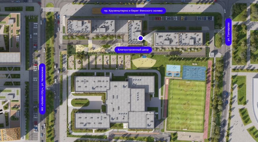 + Высокий трафик обеспечит школа, футбольный стадион, баскетбольная площадка, расположенные в комплексе